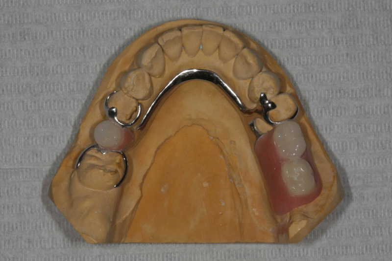 - Le bridge dentaire remplace une ou plusieurs dents absentes en prenant appui sur les dents voisines.